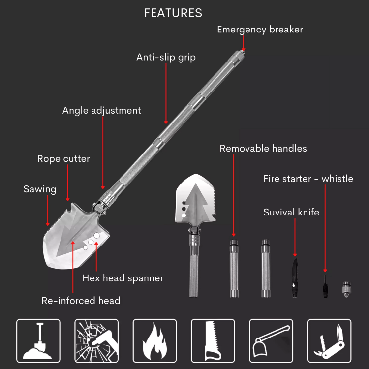 Are you prepared for whatever nature throws your way? The Outdoor Multi-Function Survival Shovel is here to ensure you are. With features like a detachable design, emergency hammer, and magnesium fire starter, this tool is essential for any outdoor adventure.